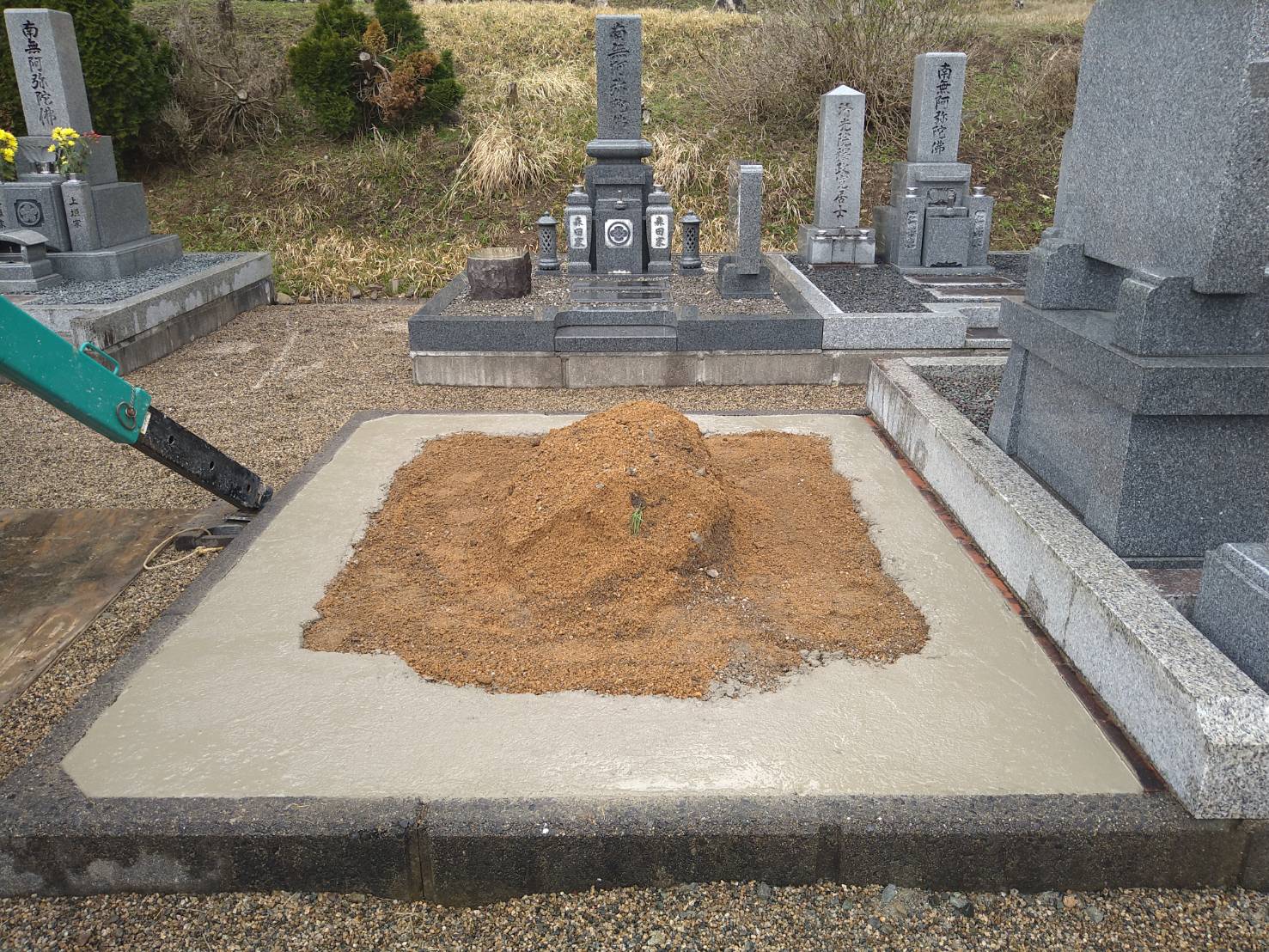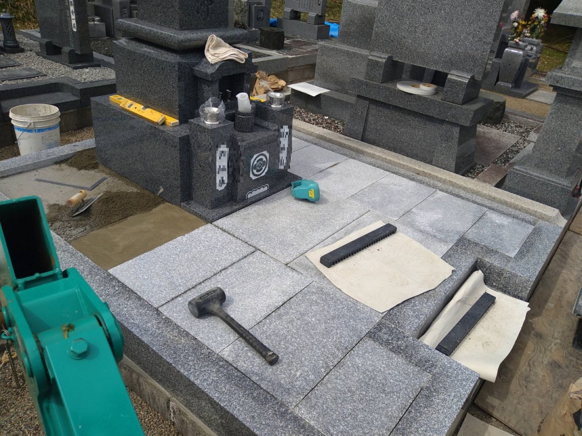 2026.02.04 豊岡市 I様 外国産グレー系御影石 尺寸二重台お寺の霊園広めの区画です石碑の周りは滑りにくく加工をされた板石を貼っています法名は石碑の側面に彫刻いたします灯篭は裏側からローソク立てを入れて灯します広いですが掃除など管理しやすいお墓です 基礎工事巻石内は貼石施工で仕上げていますオリジナルの角置き丸型灯篭 一覧へ戻る