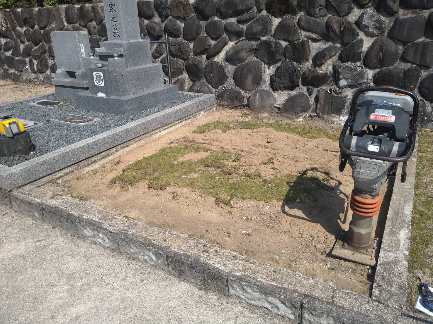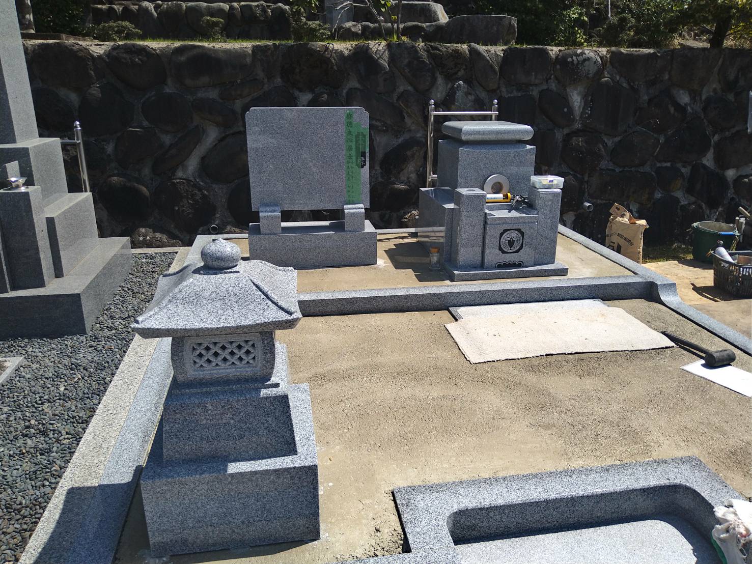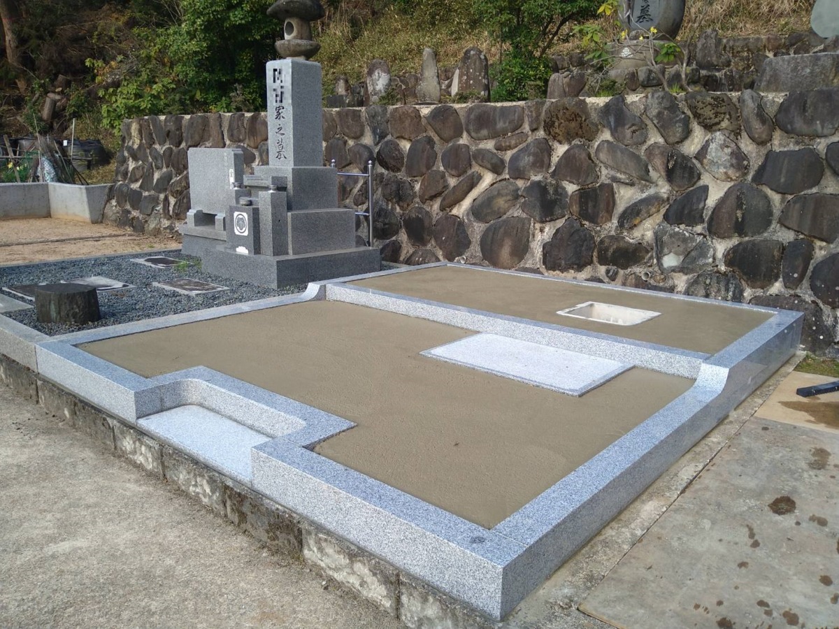 2026.01.28 養父市 K様 外国産白御影石 尺寸2重台石碑・副碑・置灯篭・延石は同じ石を使用していますステンレス塔婆立は、邪魔にならない様、代々碑の後ろへ設置いたしました 基礎工事砕石入れ転圧後ベースコンクリート打設石碑据え付け養生しながら樹脂砂利舗装 一覧へ戻る