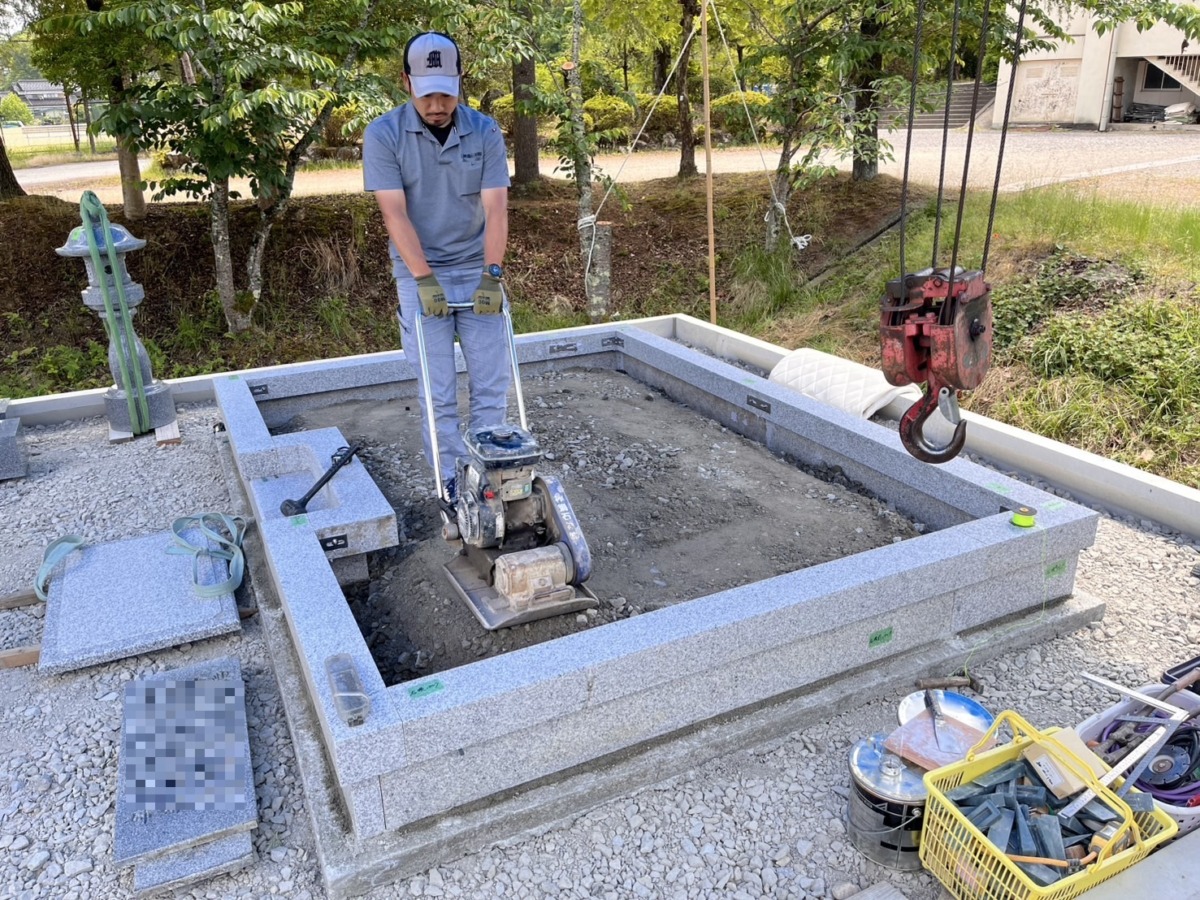 2026.03.03 豊岡市 N様 墓地移転工事 便利な場所へお引越しです歴代碑は処分し、それ以外の石碑は工場でクリーニングいたしました巻石内には砂利を敷き均し、お墓の前はコンクリート打設してありますのでとても管理しやすい墓地になっています 山の中の現墓地 石碑をすべて撤去いたしました新墓地へコンクリート擁壁の設置擁壁内の埋め戻し、真砂土転圧階段3段工下地砕石、転圧作業移転工事完了 一覧へ戻る