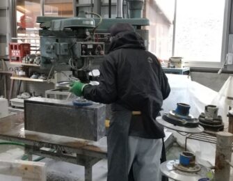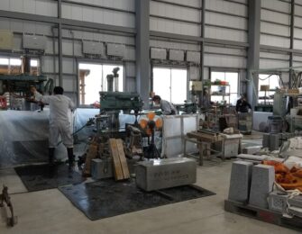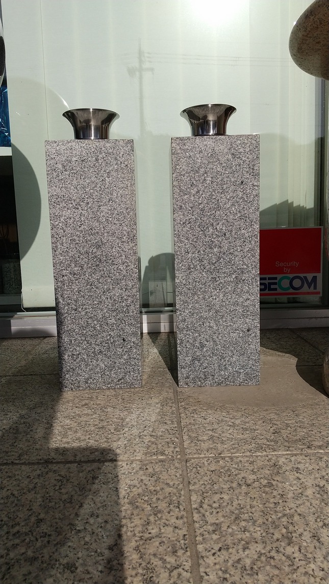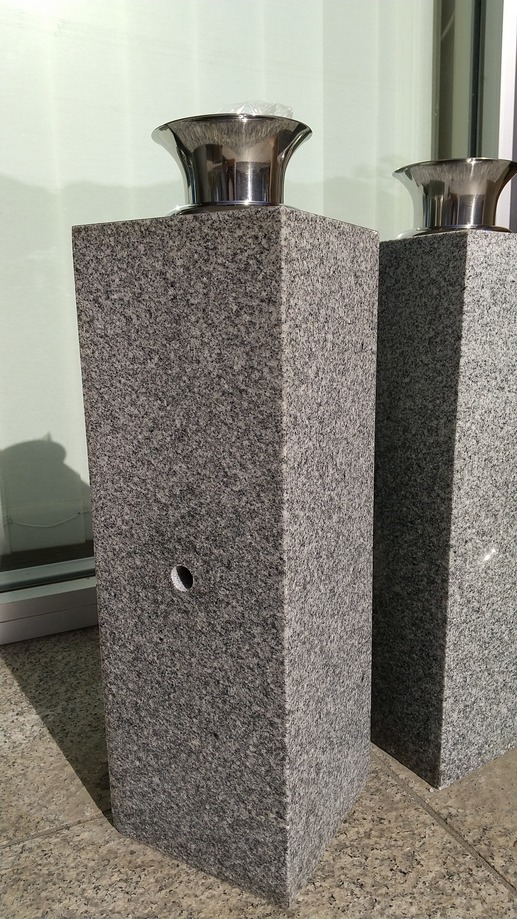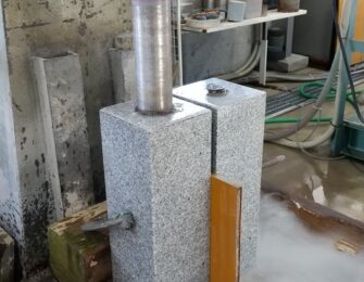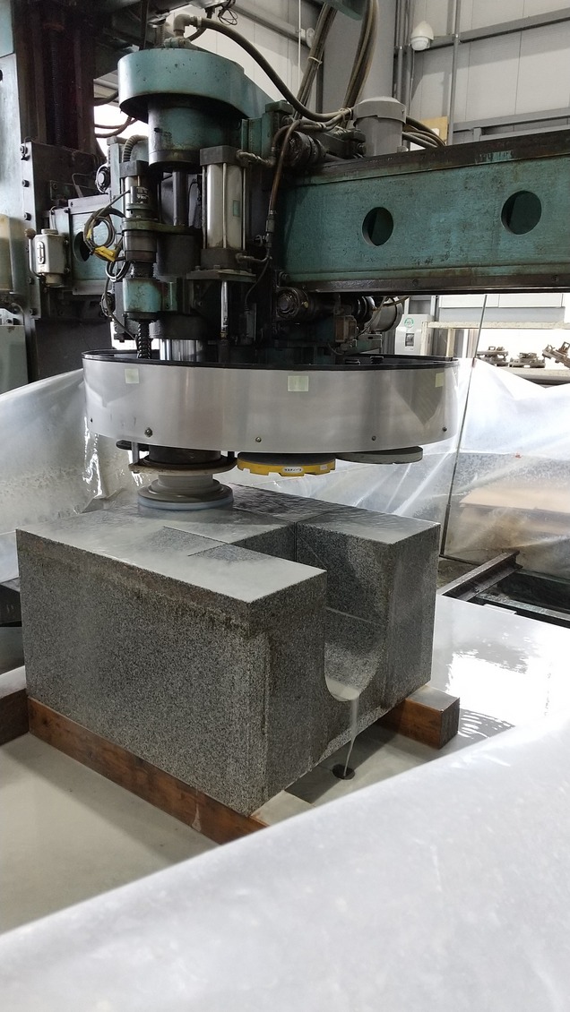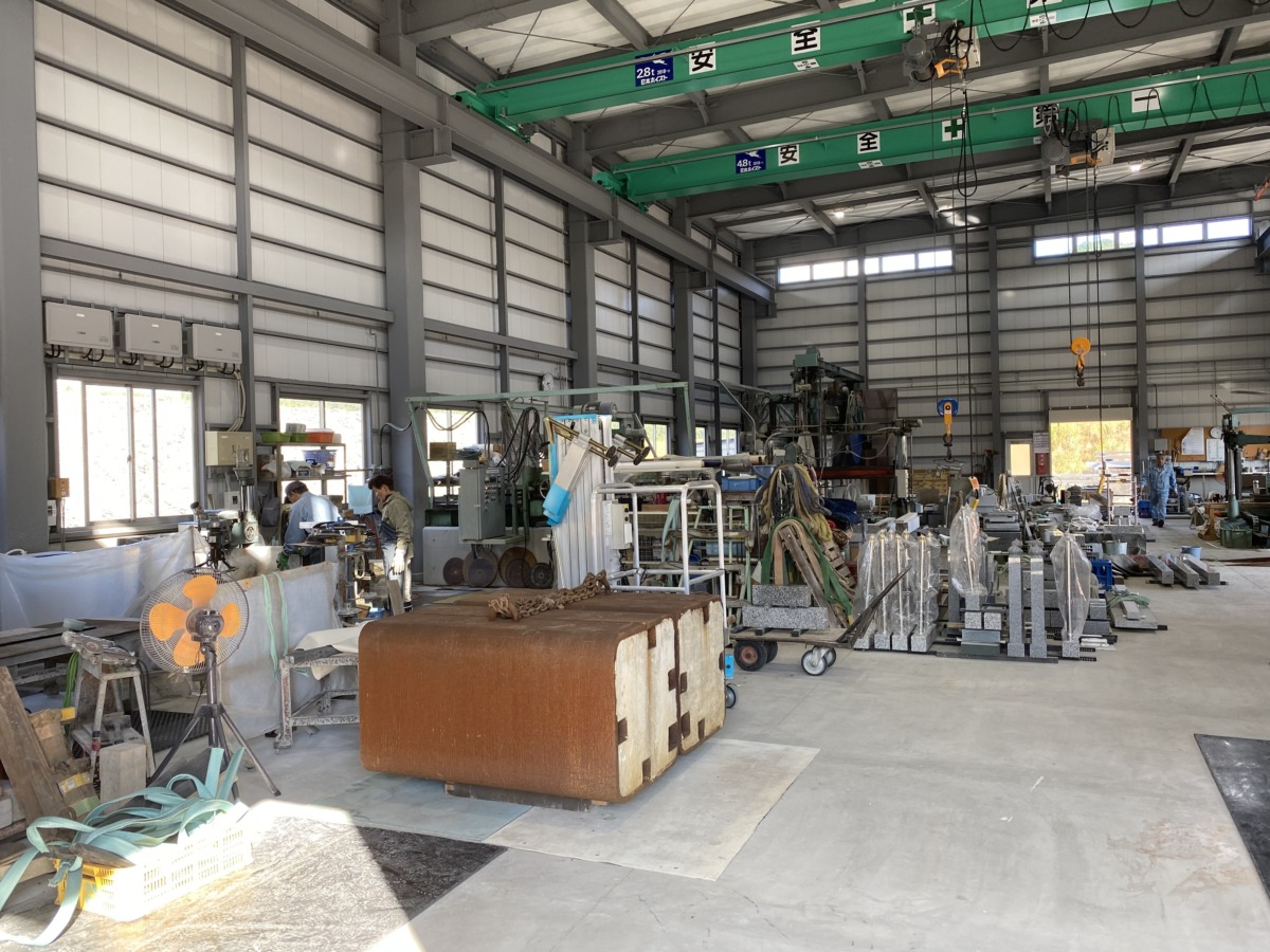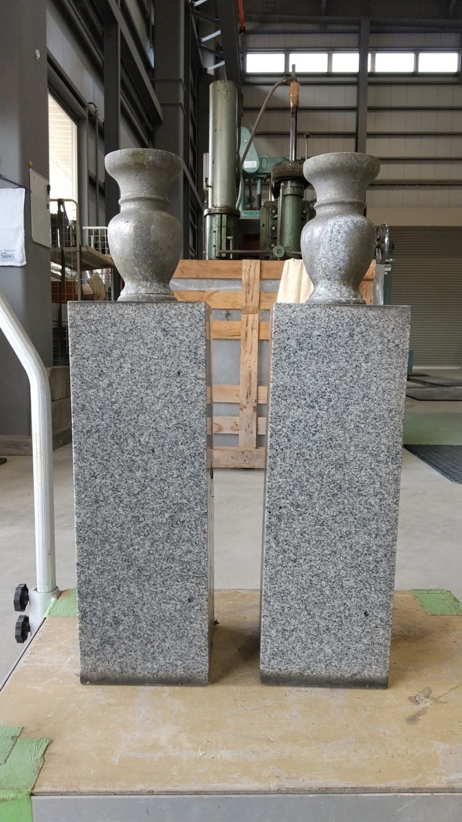 CATEGORY All 工場加工墓石事業 工場加工 工場加工 併設の工場にて、切断・切削・研磨・穴あけ作業等致します 各種研磨機を取り揃えています 研磨作業 自動研磨機 門型自動切断機 花立穴あけ直し加工 花立の中にステンレス花筒を入れるように加工しました。花の水替えも筒を抜くだけで簡単に出来ます。 鋳物製の花筒にヒビが入ったためステンレス製花筒に取替します 花立から花筒を切り離します 中に入れる花筒の大きさに穴を切削します 側面には水抜き穴をあけ溜まった水が抜けるようになっています 字彫加工 文字彫作業です。 この建物内の台車に石材を載せます 両側から照明を照らし、外側から腕を入れて作業します 彫り込む部分をくり抜いたゴムシートに勢いよく砂を吹き付けます 外側はこんな感じです。腕を入れる上に小窓があり、そこから確認しながら彫刻します