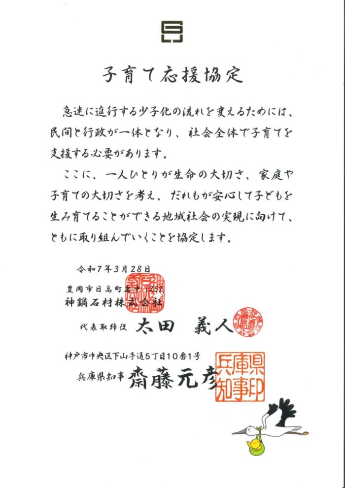 2025.05.21 子育て応援協定締結 少子化の流れを変えるべく、官民が一体となり社会全体で子育て支援する 誰もが安心して子育てできる、そんな地域社会を目指して取り組んでいく協定です 弊社も仕事と生活の調和のとれた働き方が出来る社会の実現に向けて取り組み中です 子どもたちも、もちろんママもパパも、みんなで支えていきたいですね