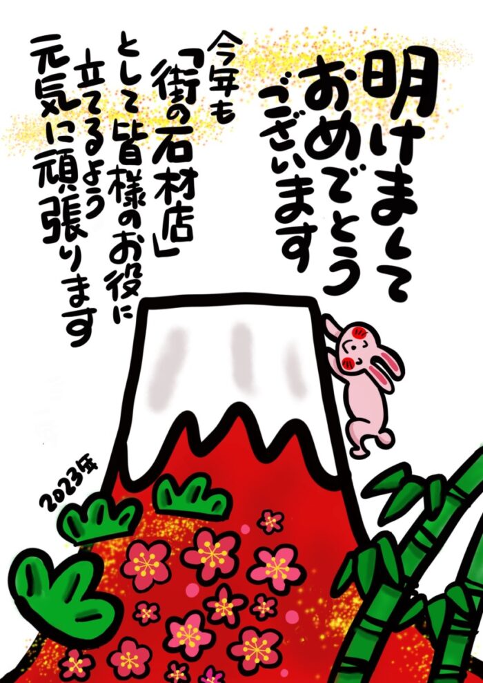 2023.01.06 2023年 新年 あけましておめでとうございます 本年も皆様のお役に立てる様、一層努力して参りたいと思っております。昨年同様、変わらぬご愛顧のほど何卒よろしくお願い申し上げます。 なお、1月6日より通常営業させて頂きます。
