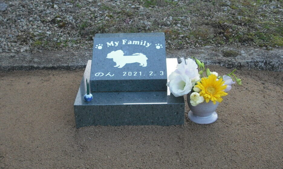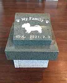 2021.03.11 ペット墓 I様 家族と共に過ごしたI様の愛犬のんちゃんのお墓です。神鍋石にイラストと文字を彫刻し、白色を入れています。 土台石の下にカロート(納骨室)を設置納骨後は動かないように、接着・固定しています 一覧へ戻る