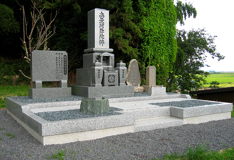 2009.03.06 施工例11 浄土真宗のお墓です。浄土真宗では竿石に南無阿弥陀佛と彫り、花立もしくは上台に家名を彫ります。副碑のタイトルは倶会一処もしくは法名碑となります。灯篭を建てないのが基本ですが、最近では浄土真宗の方でも気にせず建てられる方が多いです。 一覧へ戻る