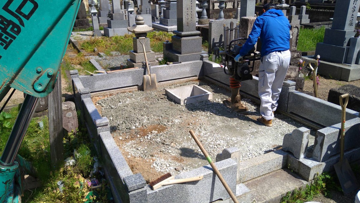 2021.04.25 日高町 K様 和型墓石建立工事尺寸二重台・副碑・墓地の角に置き灯篭を据付しました。ステンレス塔婆立と物置台の付属品も据え付けて、広い墓地に立派なお墓ができました。 墓地を持っておられたK様。敷かれていた砂利を一旦撤去し整地作業納骨室を据えて、下地コンクリートを施工しました砂利を敷き詰めた後、樹脂で固めてあります。 一覧へ戻る