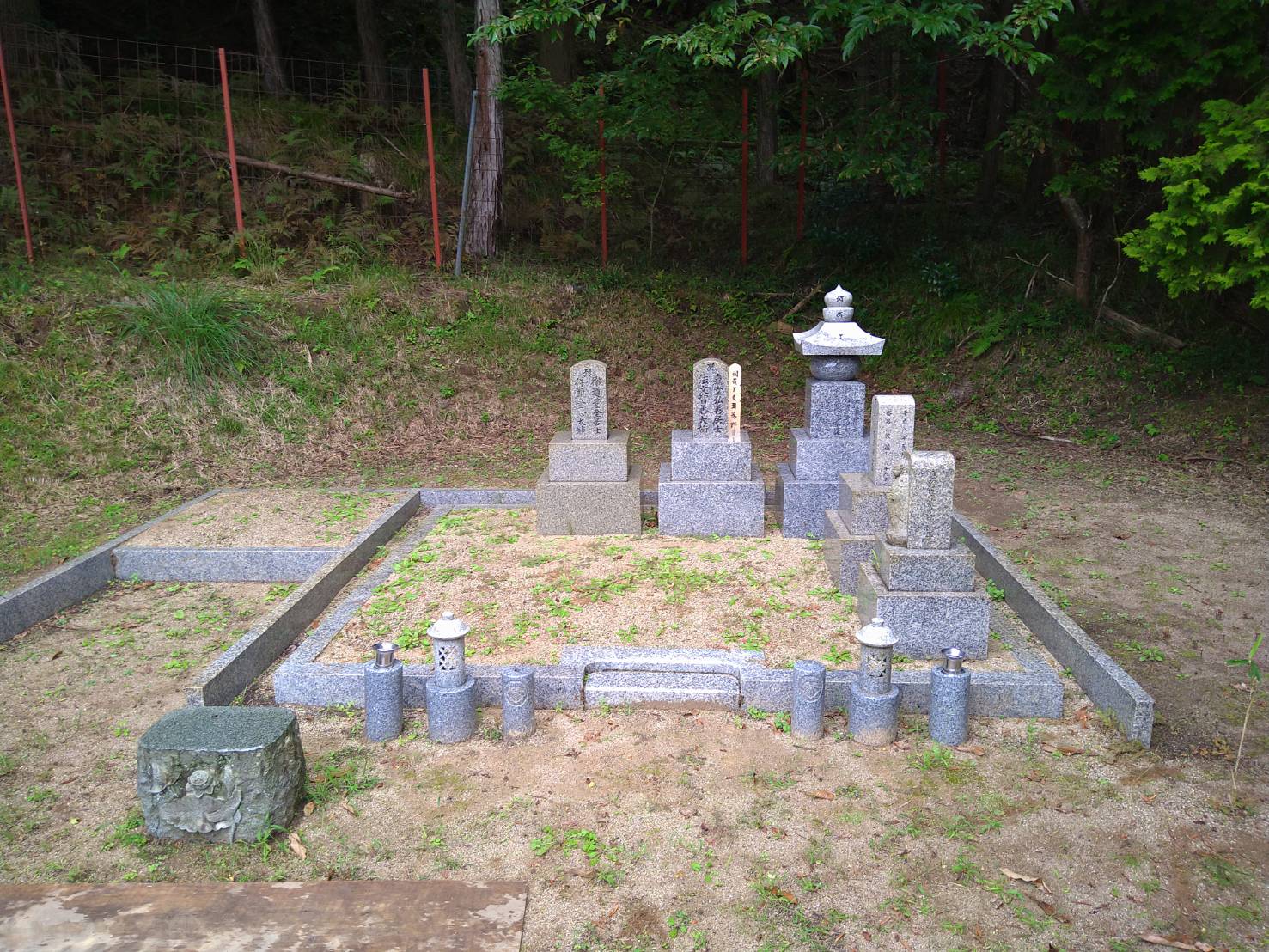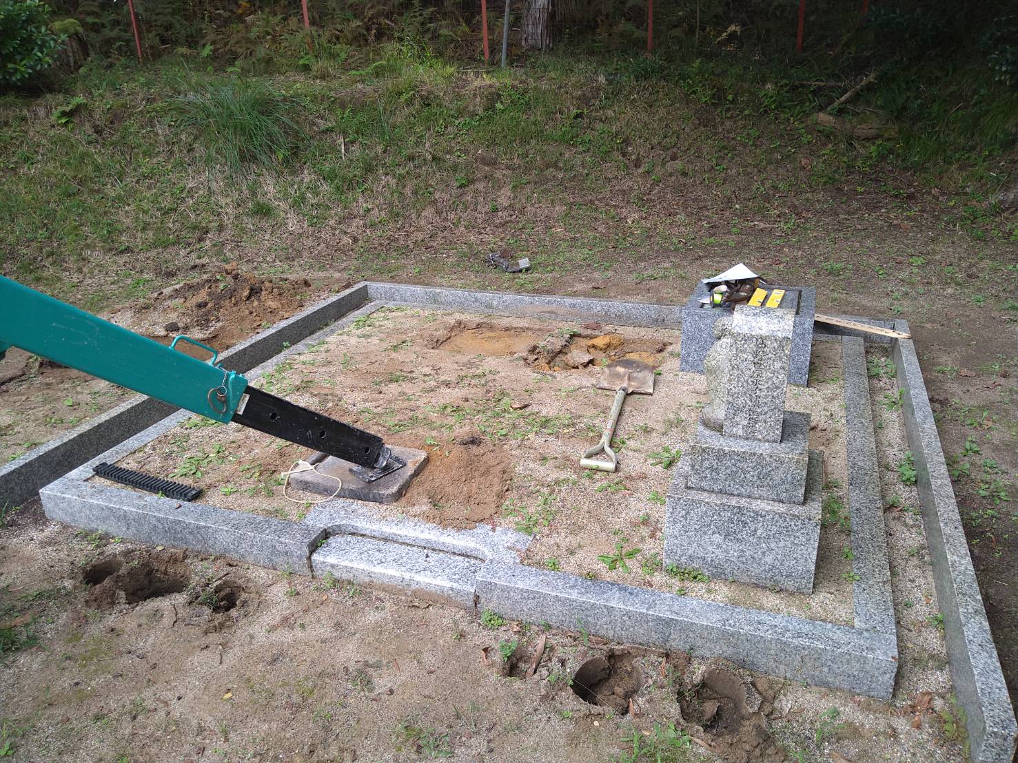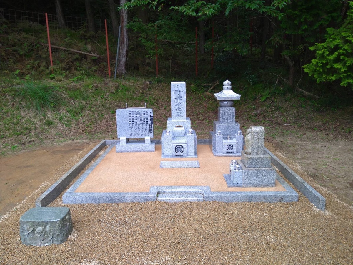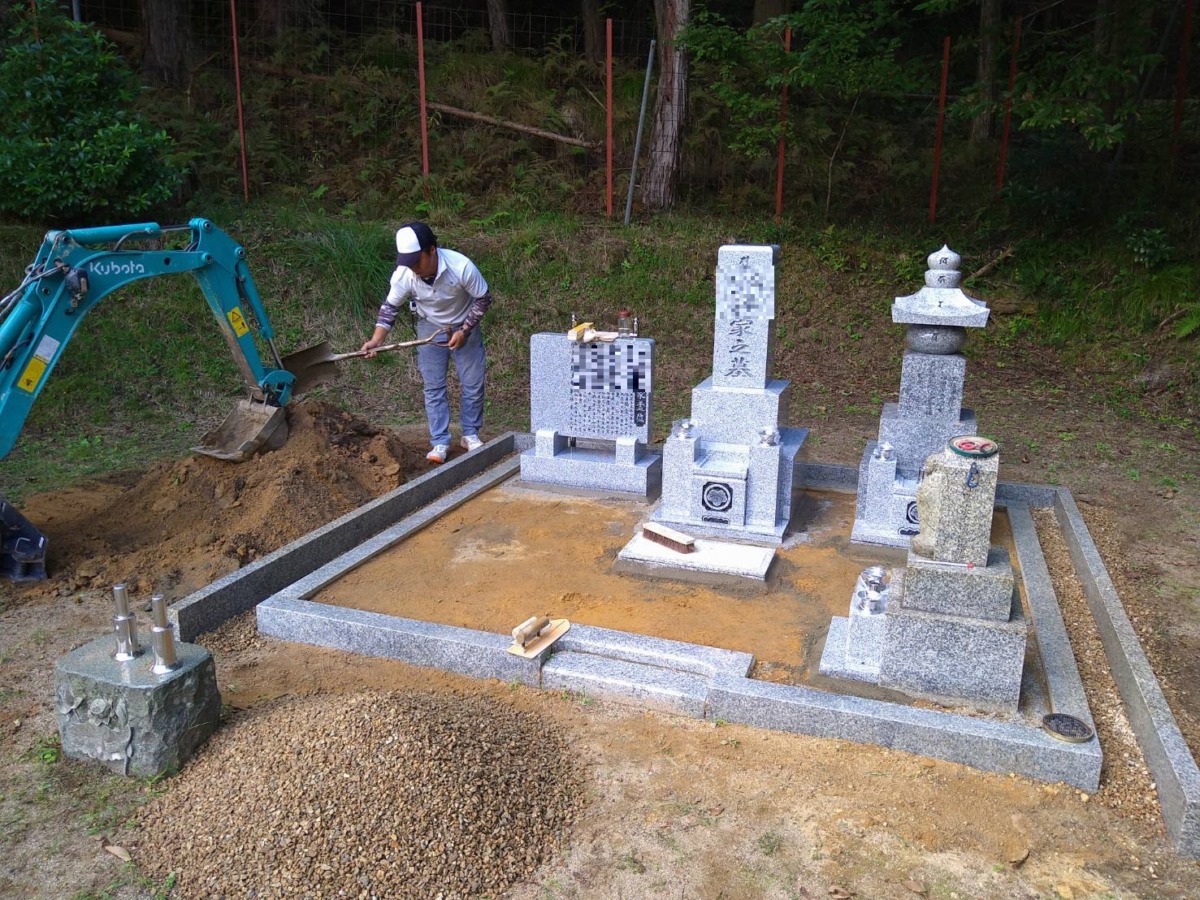 2025.06.30 豊岡市 N様 和型墓石 8寸2重台 外国産白御影 歴代の夫婦墓が据え付けてありましたが、この度撤去して新設の副碑に彫刻します五輪塔とお地蔵さまはそのままに、新たに代々碑を中央に配置しました向かって左には副碑、その裏にはステンレス塔婆立を据え付けました仕上げに防草対策の無草土舗装と入口前には砂利を敷き均しています 歴代の夫婦墓を撤去処分いたしました巻石内を無草土仕上げにするため、表面の土を除去しています代々碑の下に納骨堂を作る為カロートを設置しています代々碑と副碑を新設した後、無草土施工いたします 一覧へ戻る