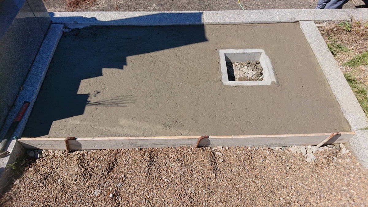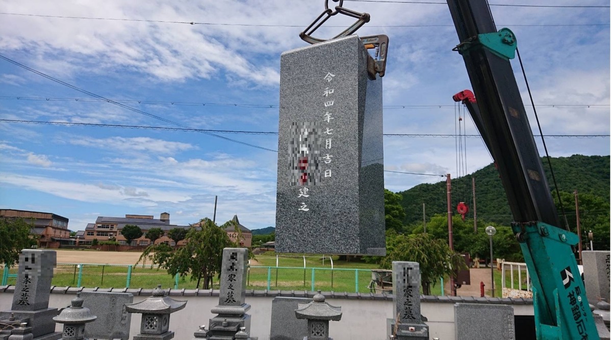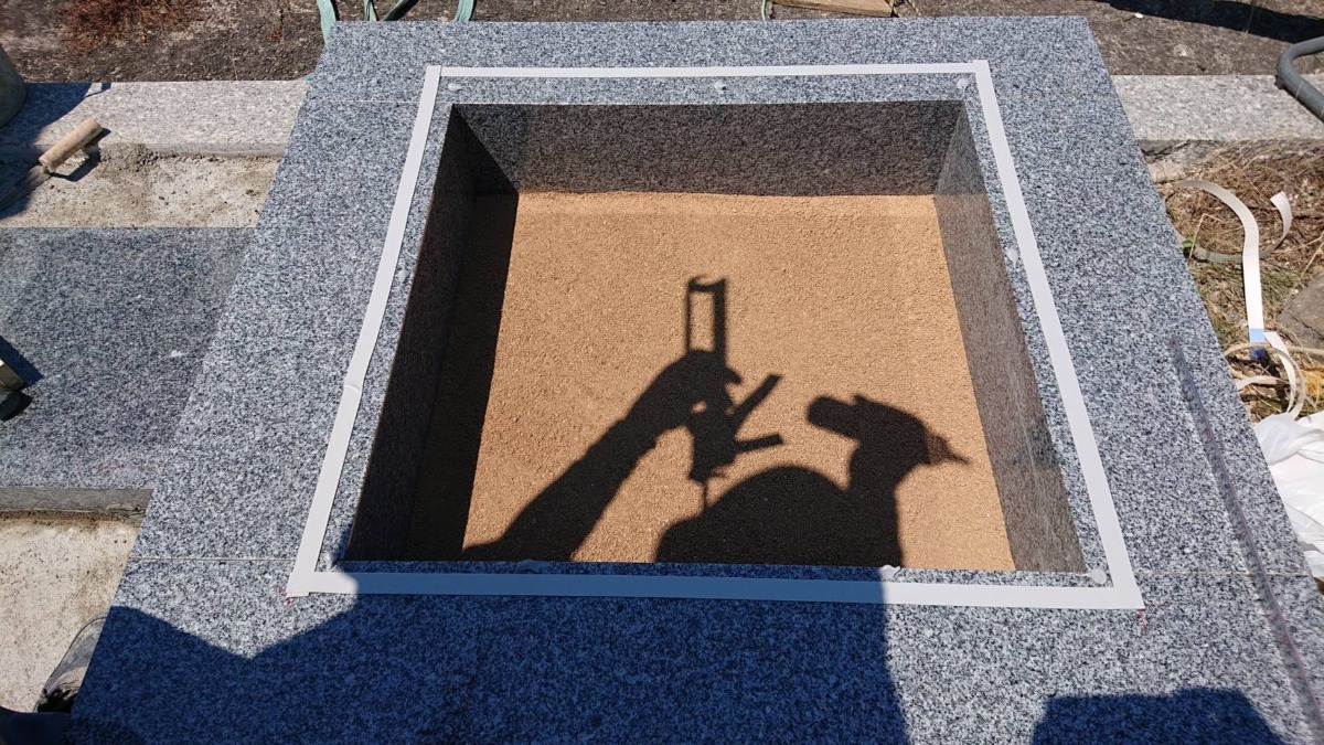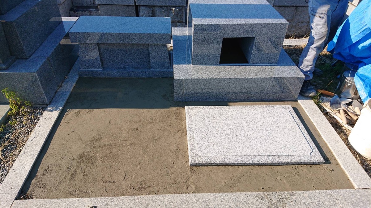 2024.02.01 豊岡市 T様 和型墓石 尺寸3重台 蓮華付き外国産 グレー系御影石お墓の管理がしやすい様、石碑の周りは樹脂砂利舗装してあります ワイヤーメッシュを設置後の基礎納骨が出来る様に真砂土が入っています隣に舞台式の霊標を置きますカニクレーンで吊り下げ、据付します 一覧へ戻る