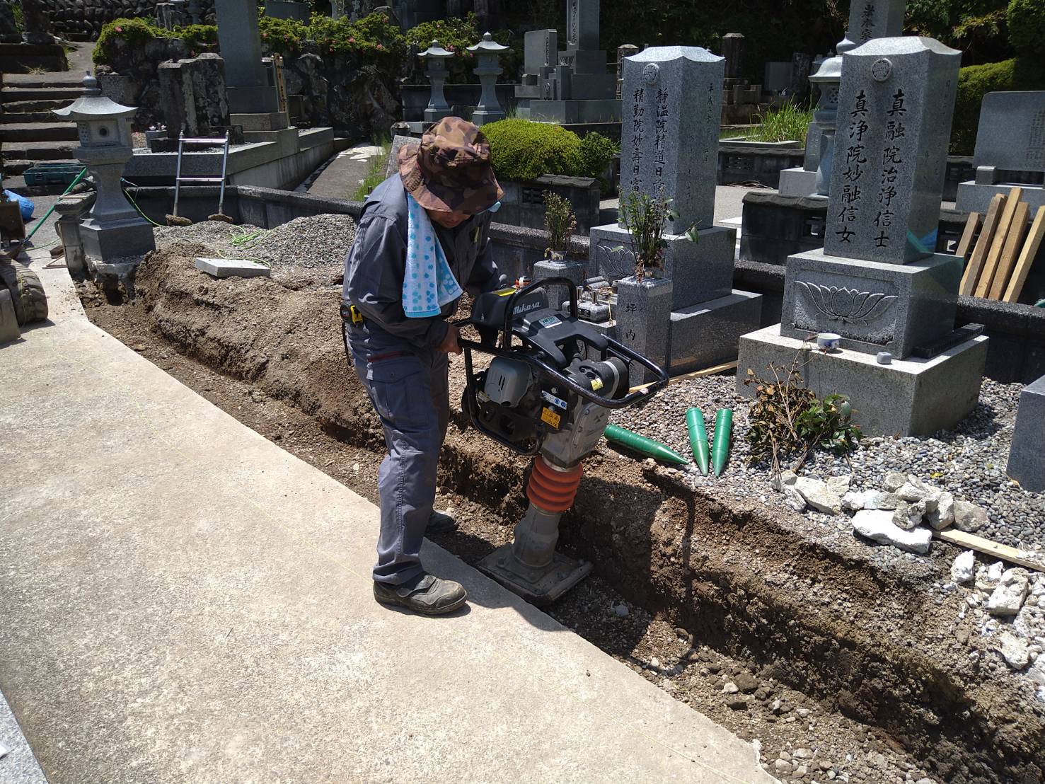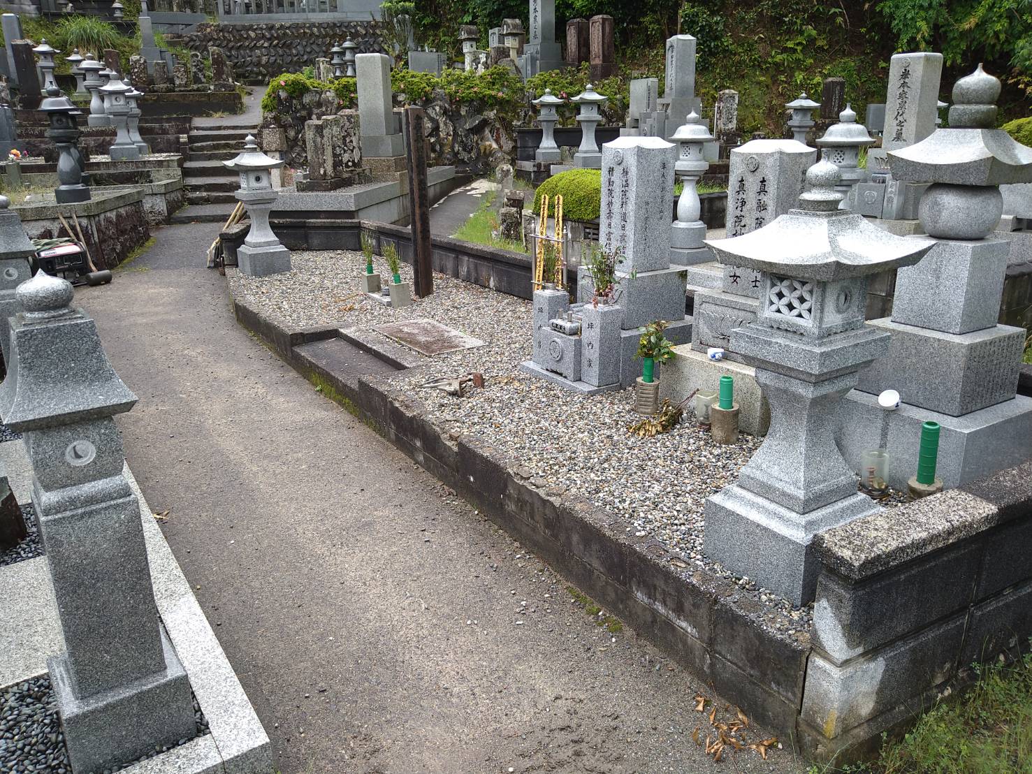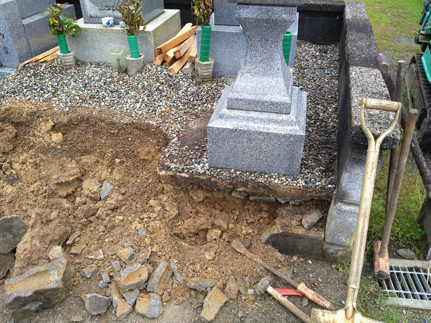 2021.06.17 豊岡市 T様 大島石(愛媛県) 尺一寸二重台 石碑新設既存墓地の改修も同時に施工いたしました 施工前の写真です既設のブロック塀を解体撤去しました整地転圧しコンクリート打設の後、延石を据え付けます歴代碑据え直し・代々碑据付・化粧砂利敷均しで完成です 一覧へ戻る