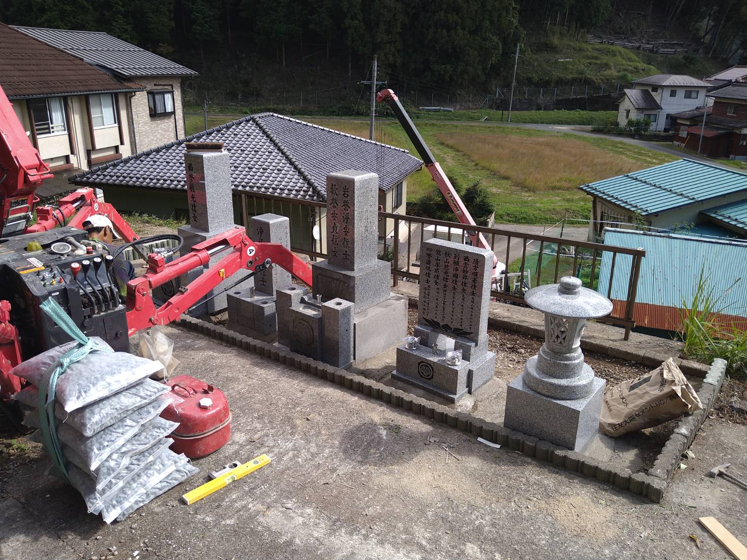 2021.11.05 豊岡市 M様 夫婦墓建立 夫婦墓建立にあたり、歴代碑を撤去し歴代戒名碑に刻み直しました。石碑を整理し、那智黒石を敷き詰めています。 既設の石碑を撤去し、転圧・草抑え処置をします夫婦墓・歴代戒名碑・既設の石碑・灯篭を据え付けます 一覧へ戻る