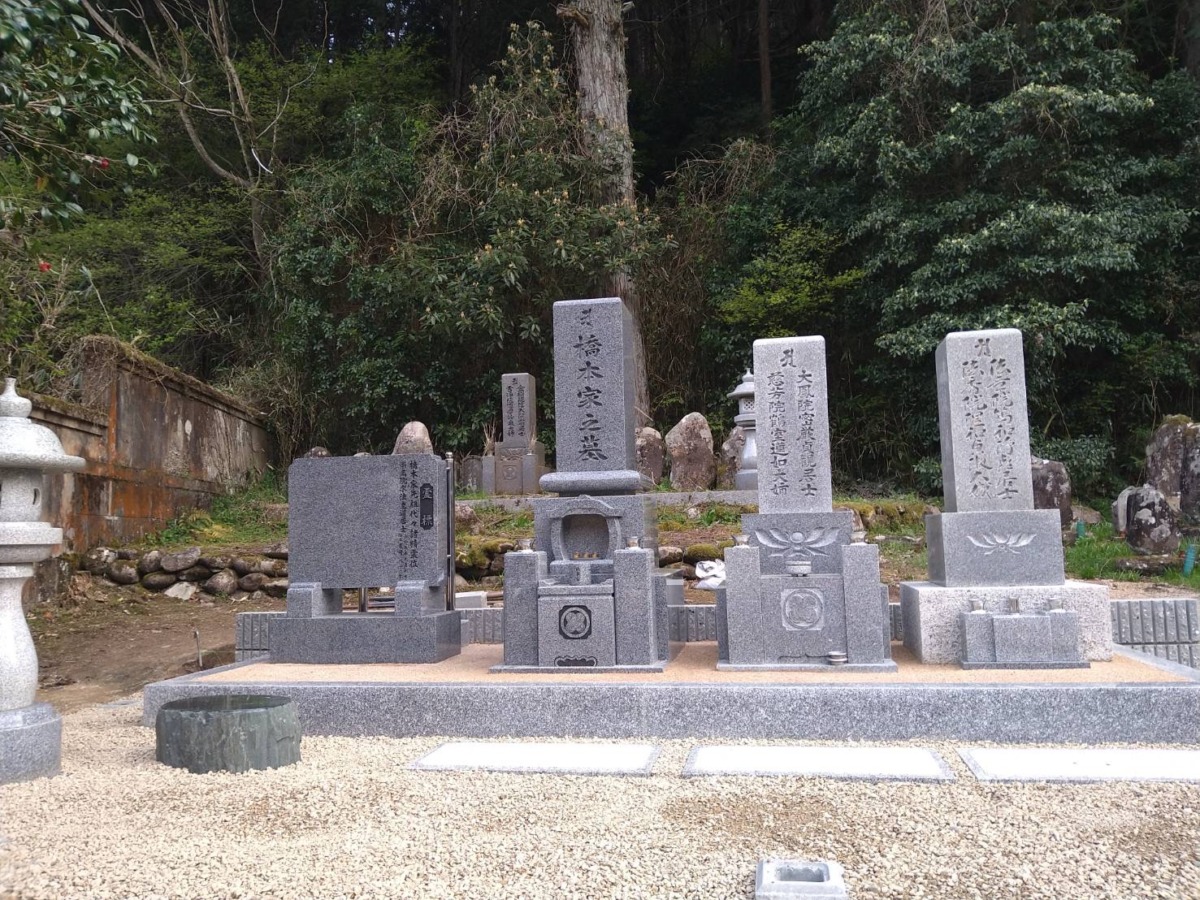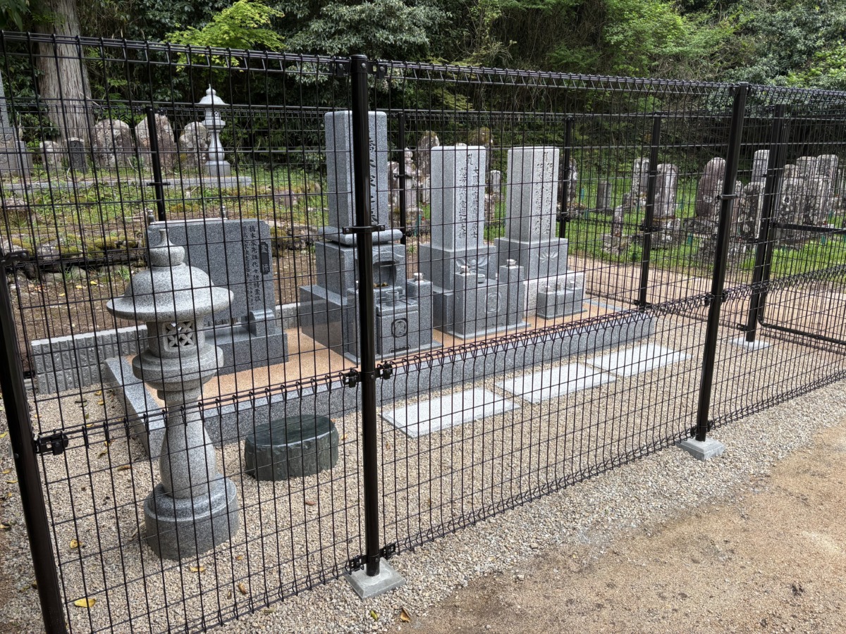 2026.01.28 養父市 H様 外国産御影石 尺寸二重台墓地が広いので、歴代碑2基と副碑も横並びに設置巻石内は防草土施工いたしました リブブロック積と巻石工事土を入れた納骨室石碑前には拝石を設置しています墓地への坂道に手すりを取り付けました仕上げに獣害対策のフェンスを設置供えたお花もこれで安心です 一覧へ戻る