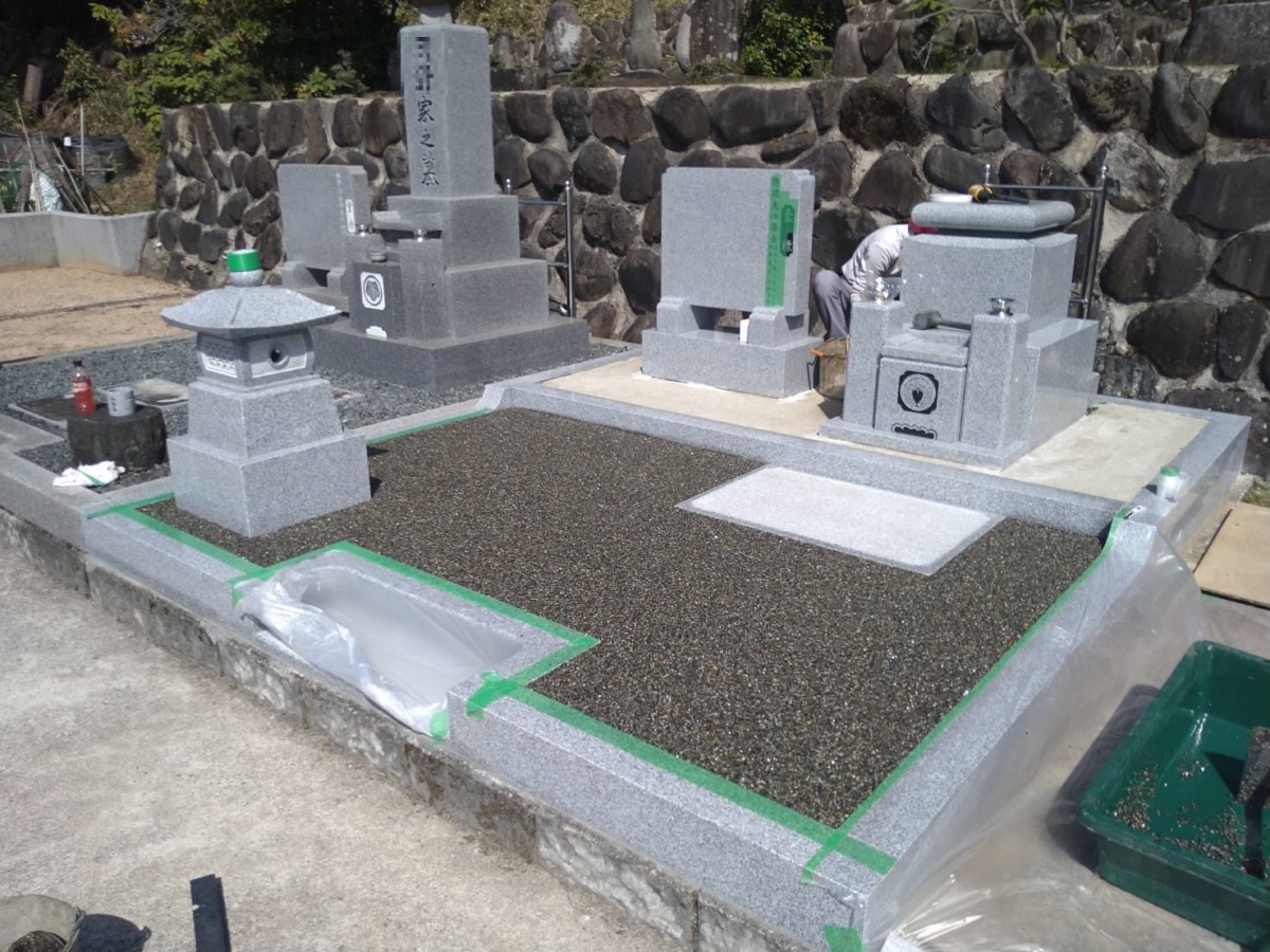 2026.01.28 養父市 K様 外国産白御影石 尺寸2重台石碑・副碑・置灯篭・延石は同じ石を使用していますステンレス塔婆立は、邪魔にならない様、代々碑の後ろへ設置いたしました 基礎工事砕石入れ転圧後ベースコンクリート打設石碑据え付け養生しながら樹脂砂利舗装 一覧へ戻る