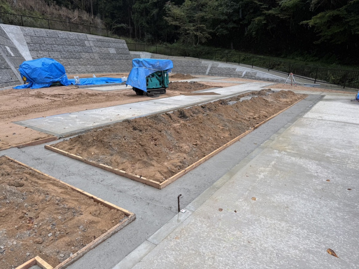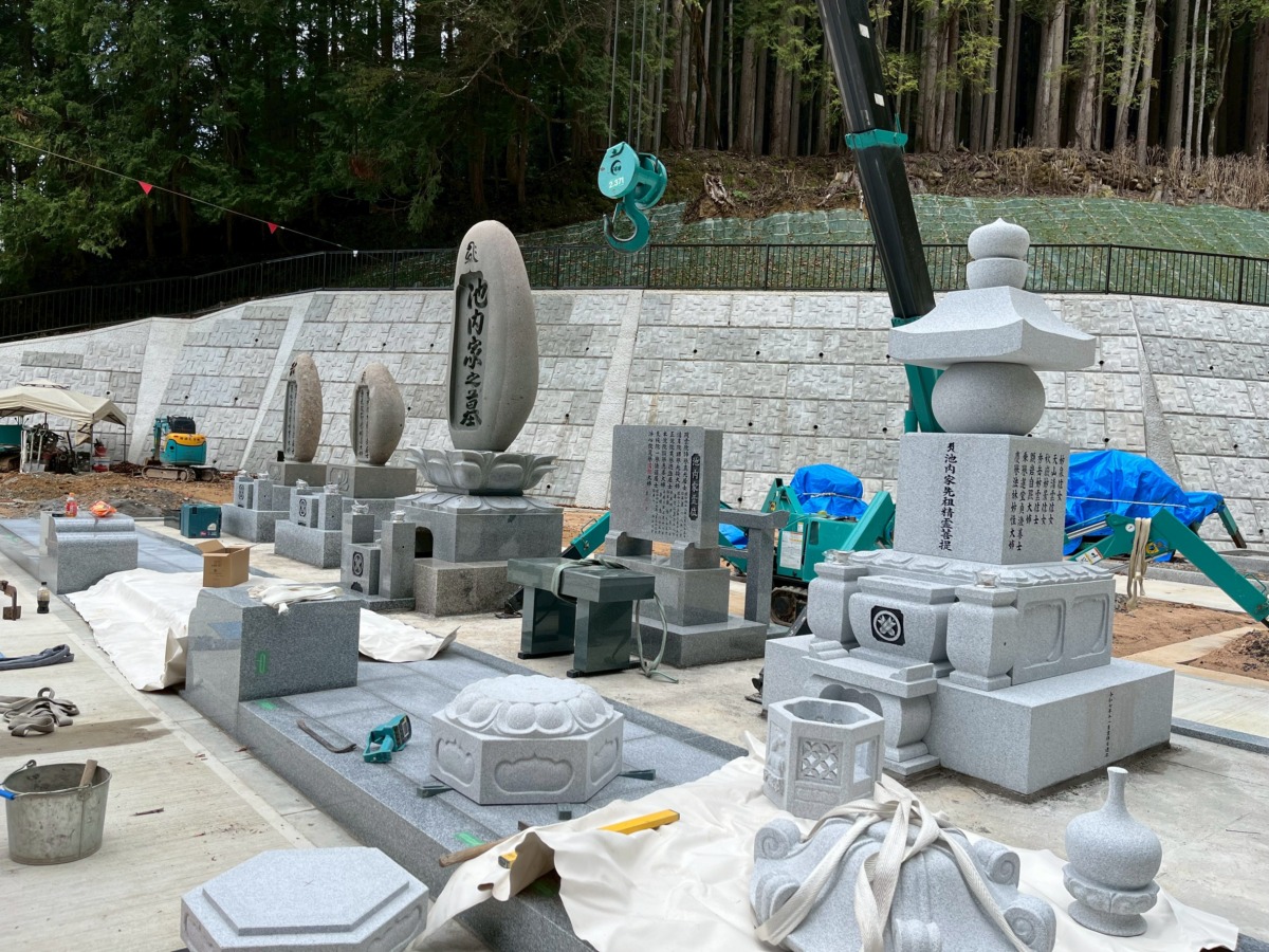 2026.01.29 香美町 I様 国道の工事により造成された霊園への移転工事です墓地内を親柱付きの玉垣で囲みましたとても大きな代々碑・歴代碑を並べ、入口には6尺の春日灯篭を1対豪華なお墓です 基礎工事 とても広い区画です山から降ろした石碑を新墓地に据え付けえます新設の五輪塔へ処分した歴代碑の戒名を彫刻いたしましたペット墓と移転由緒碑 一覧へ戻る
