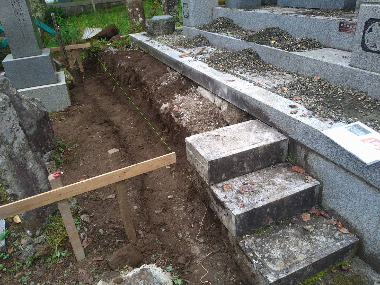 2021.10.19 豊岡市 I様 無草土施工 既設の砂利を取除き、石碑周りは神聖な場所で厄除けの力があると言われる朱色の無草土を その一段下は黄土色の無草土を施工しています 施工前通路の石垣は解体新たに間知石を積んでいます 一覧へ戻る