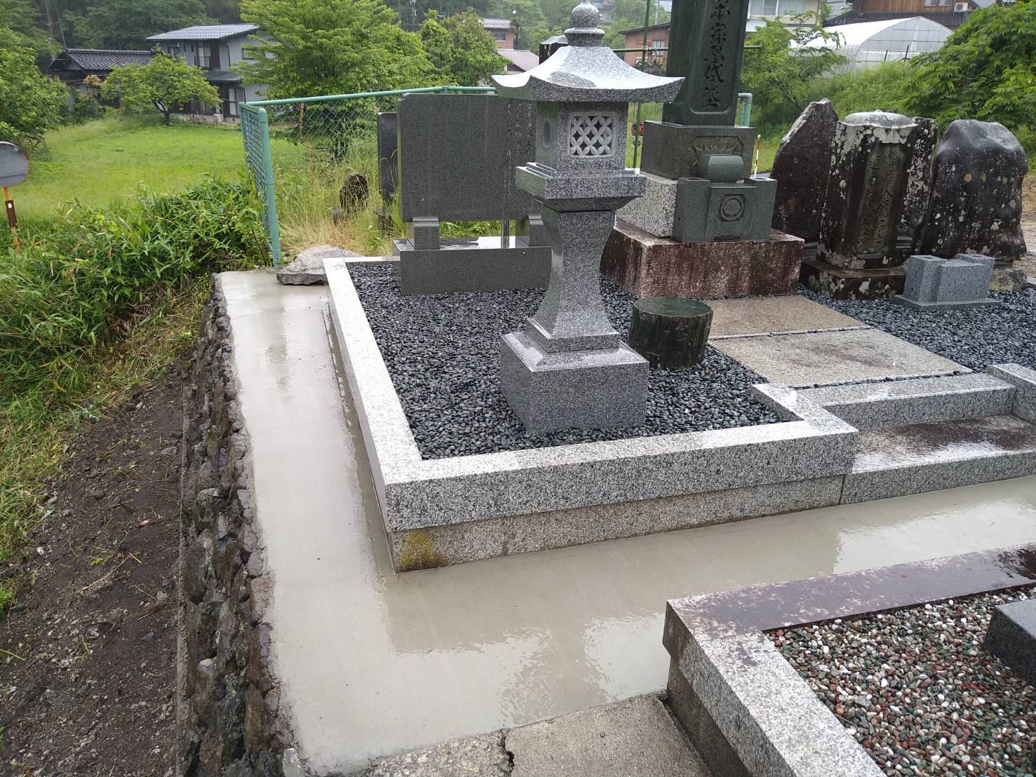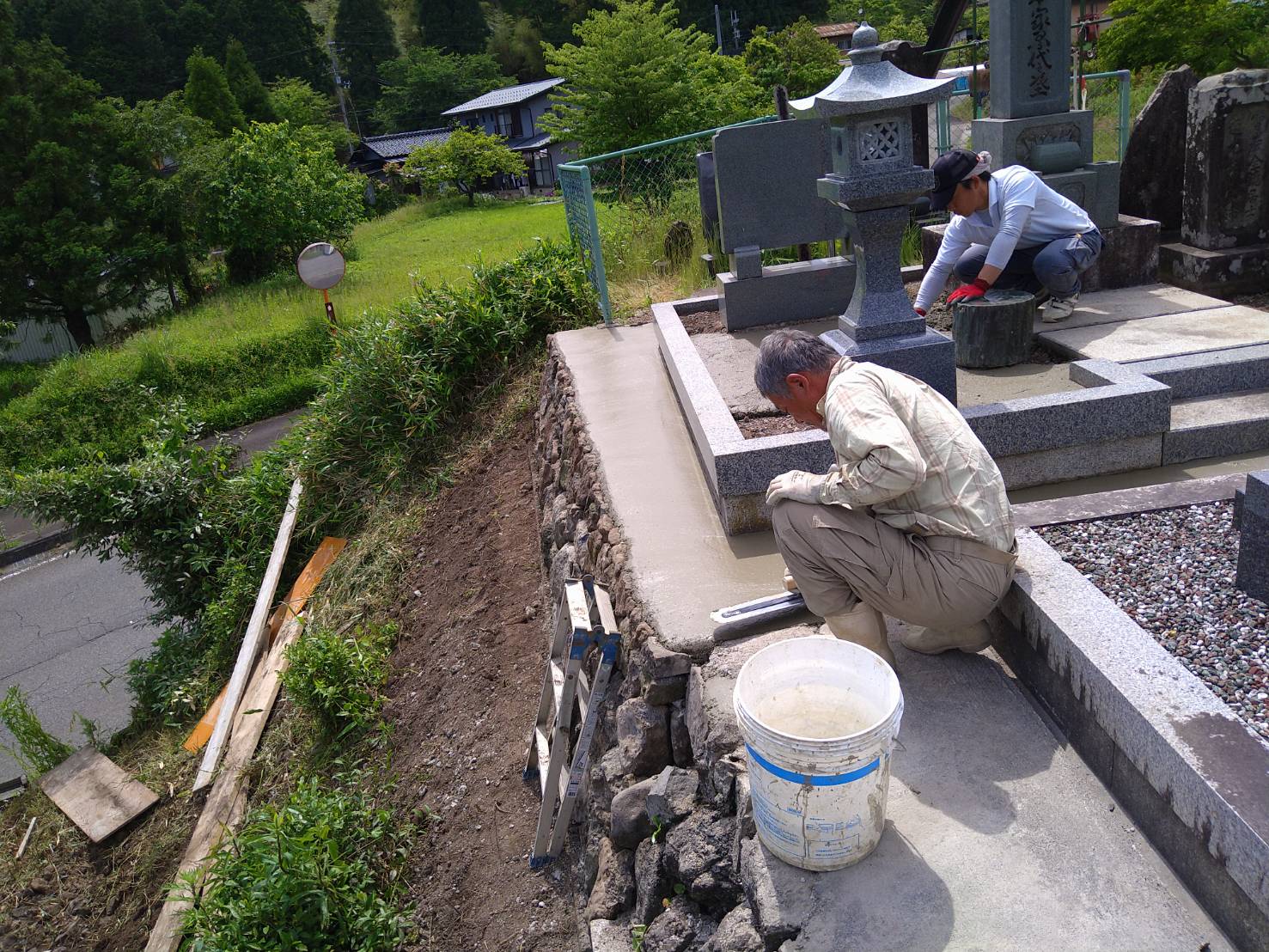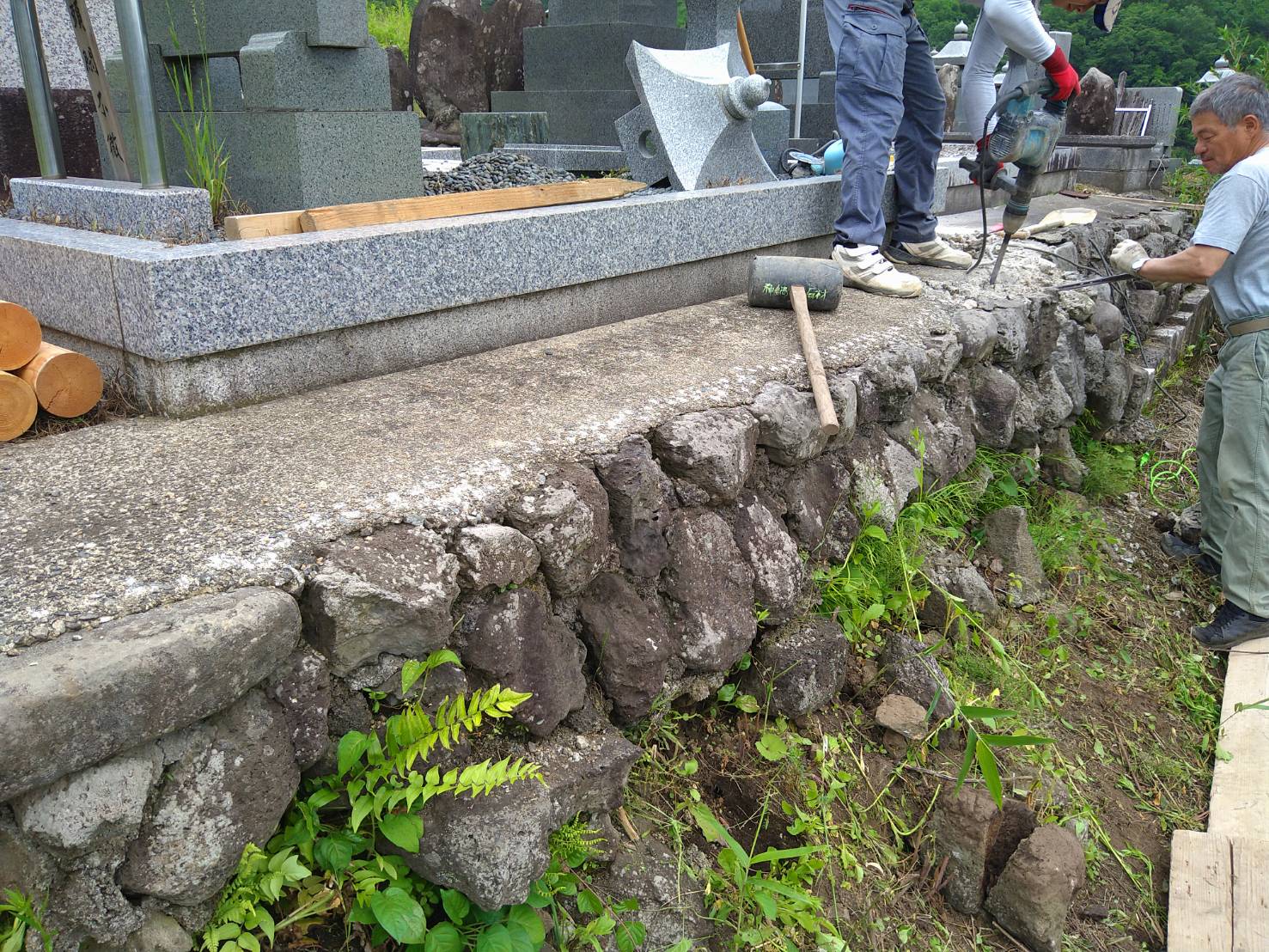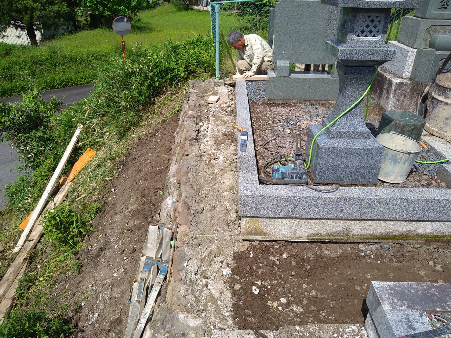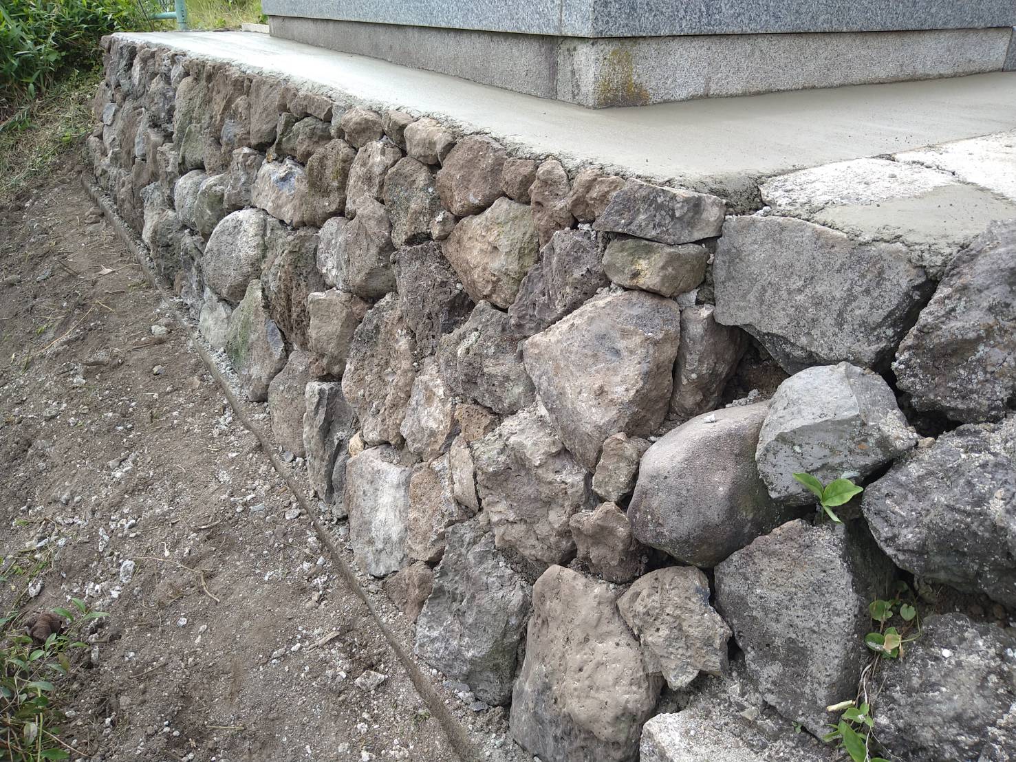 2021.06.08 豊岡市 O様 石垣の積直し・通路のコンクリート打設・墓地内の改修工事です。 灯篭の笠の部分が雪のせいで落ちています既設の石垣を一旦解体します掘削・杭打ち・ベースコンクリート打設のあと、石を積み直します延石周りの通路にコンクリートを打ち、滑らないようにハケ引きしザラザラした表面に仕上げます墓地内にも草抑えのコンクリートを打ちます化粧砂利を敷き詰め完了です 一覧へ戻る