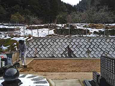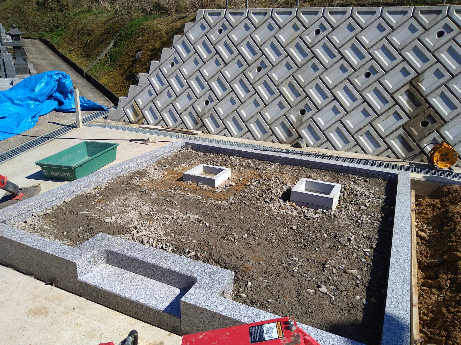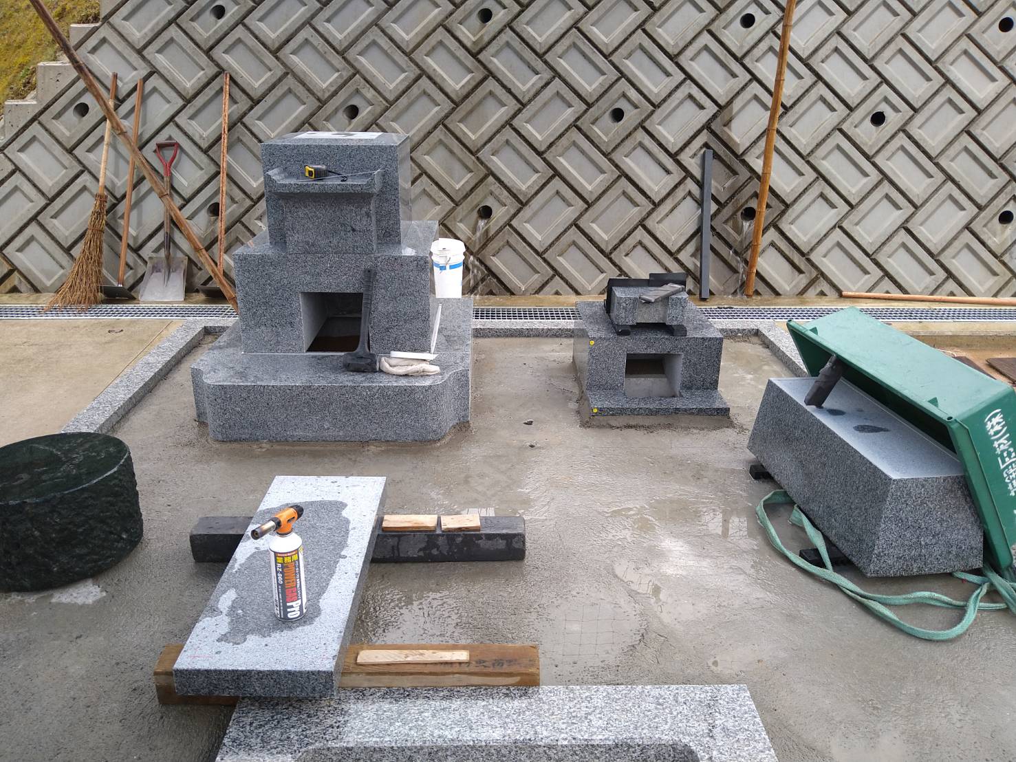 2021.04.20 養父市 N様 山にある墓地よりお参りに便利な霊園墓地への移転工事です。旧墓地より石碑を移設し五輪塔を新設されました。 代々碑・副碑・灯篭・地蔵尊を磨き直すため一旦お預かりしました旧墓地跡をきれいに整地しましたこちらの霊園墓地に移転いたします代々碑と五輪塔を据え付ける位置に納骨室を設置していますそれぞれ納骨室の上に組み立てていきます 一覧へ戻る