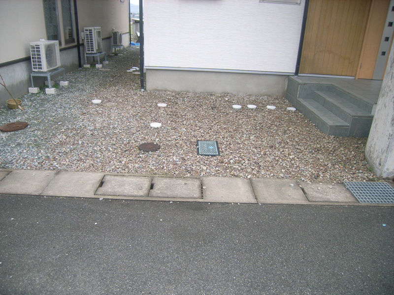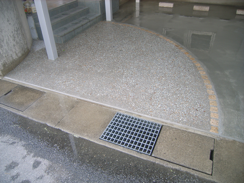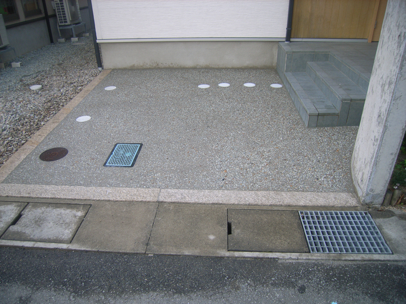 2012.07.13 施工例13 コンクリート生コン洗い出し仕上をアプローチに施し、 中の骨材砂利が表面に出る事により、質感を出しました。カーポート車庫土間が欲しいとのご依頼。金ゴテ押工との間には、アールでピンコロ石を入れ変化を付けています。 一覧へ戻る