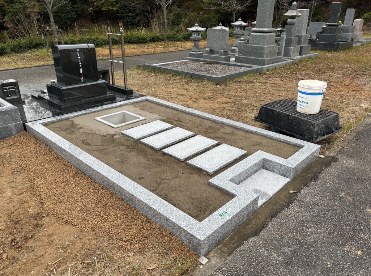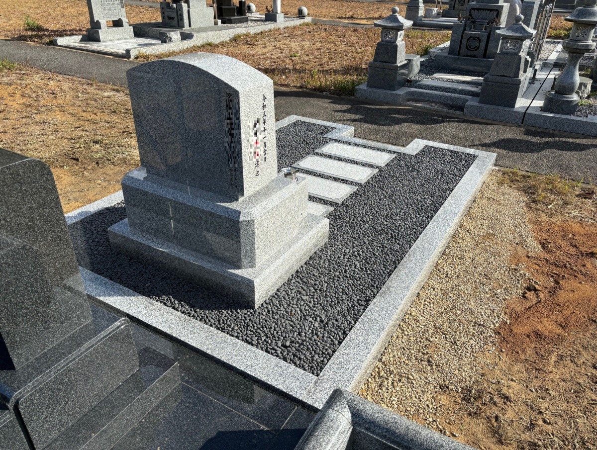 2024.09.05 豊岡市 M様 外国産 白御影石 洋墓 市が管理する霊園墓地への建立工事ですシンプルですが、丸みがあり優しい雰囲気のお墓です仕上げに黒系の砂利を敷き均しています 巻石を据えた後カロート・拝石を設置しています霊標は設置されず、石碑の裏面に戒名が彫刻できるようになっています 一覧へ戻る