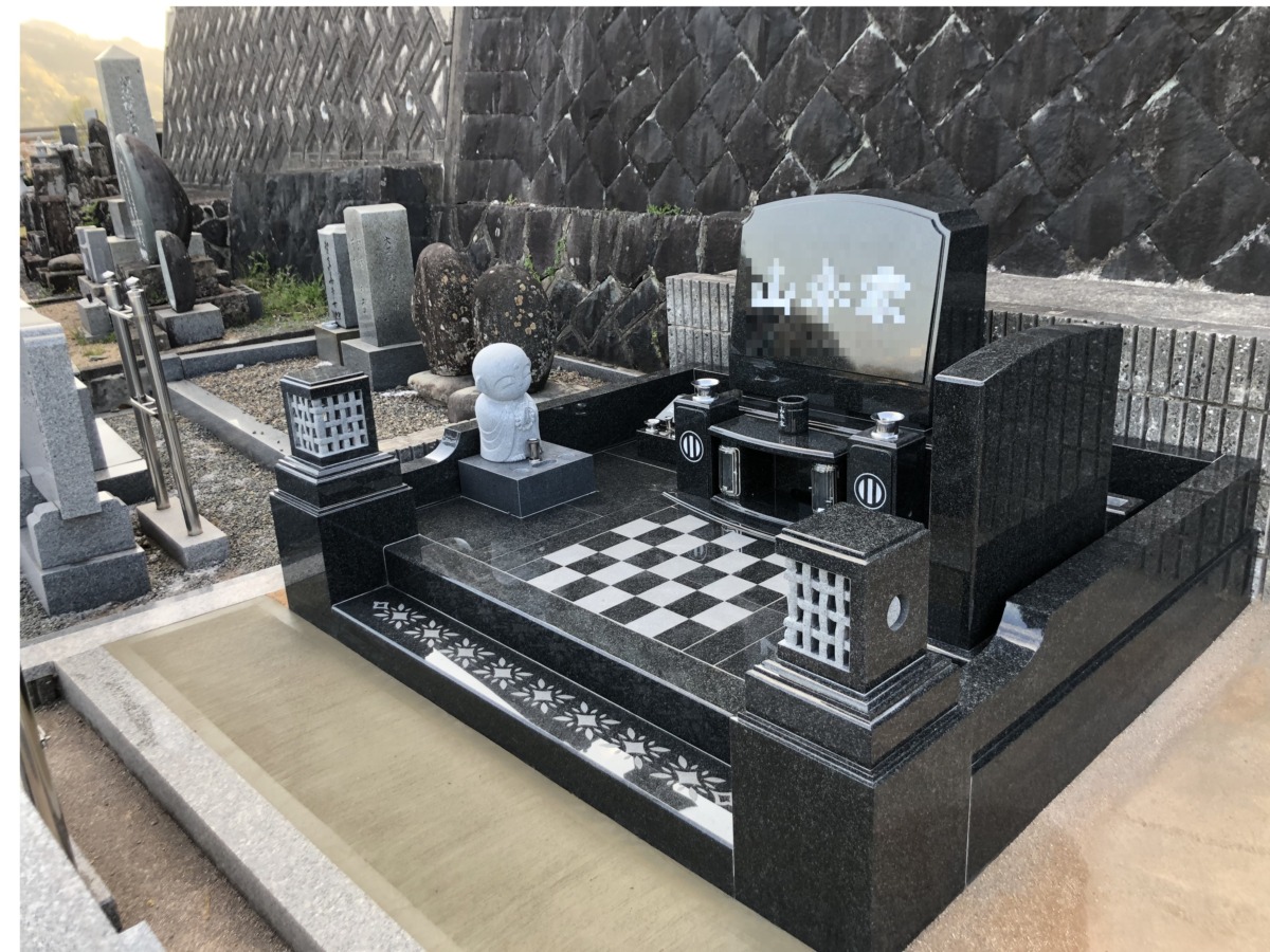 2021.05.23 豊岡市 Y様 インド産の黒と緑がかった石を使用した洋墓です。お墓全体を同じ石材で統一し、コンパクトな中にも角置き灯篭・塔婆立・お地蔵尊・ペット墓とお客様の希望が叶えられています。お手入れも簡単で、お参りしやすいお墓です。 一覧へ戻る